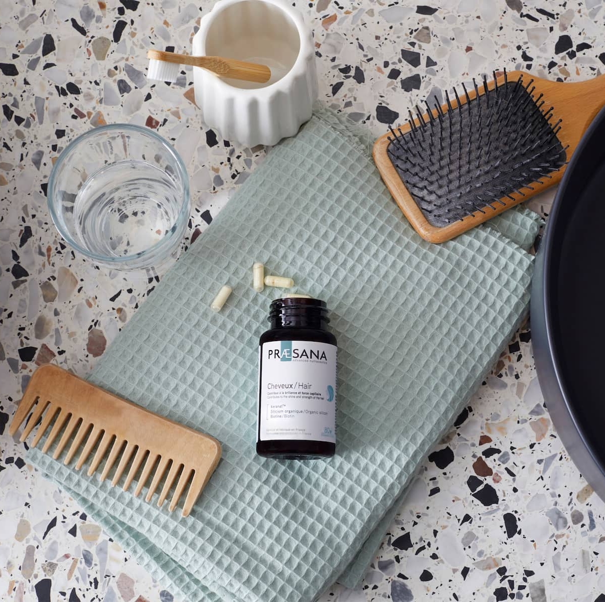 La biotina (o vitamina B8) è una vitamina derivante principalmente dalla nostra alimentazione o prodotta dalla flora intestinale. Come tutte le vitamine, è coinvolta in un gran numero di funzioni biologiche e svolge un ruolo importante per la salute dei capelli. La vitamina B8 contribuisce al mantenimento di capelli normali. Si raccomanda un’assunzione regolare.9